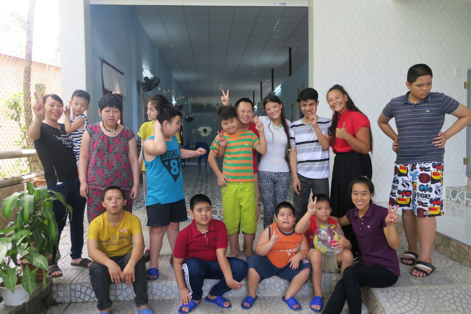 Toen we aankwamen bij het gebouw, zagen we iemand voor het raam staan, die richting het hek liep. We stapten uit de auto en werden binnengelaten in Tam Binh. We stelden ons voor en vertelden dat we Nederlanders zijn. We werden hartelijk ontvangen door de vrouw en een kindje kwam al op ons af met fotootjes die hij wilde laten zien. We kregen een rondleiding door het gebouwtje en werden ondertussen gevolgd door het hele schattige jongetje.